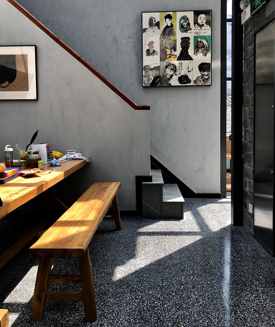 位于湘西(xī)鳳凰的(de)一家書(shū)畫室,設計(jì)深淺不一的(de)灰色調搭配裝飾,地(dì)面采用(yòng)深灰色白石顆粒立潔無機水(shuǐ)磨石,構造出樸素、典雅又(yòu)不落俗套的(de)藝術(shù)格調。